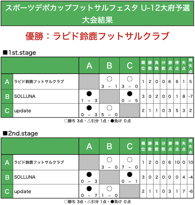 U-12 | 2025/09/21(日) | 大府グリーンフットサルクラブ | 結果 |