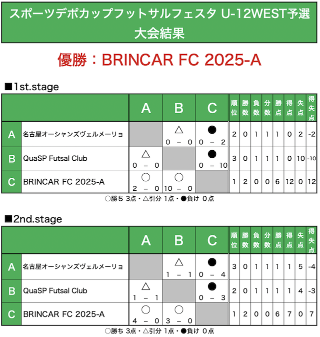 U-12 | 2025/09/27(土) | ZUCC FUTSAL BASE 大井 | 結果 |